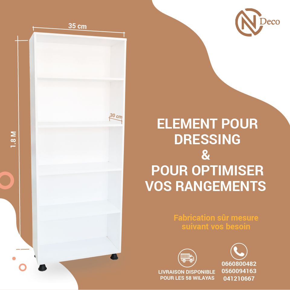 Dimensions: 180x35x30 cm Fabrication sur mesure selon vos besoin Livraison Disponible sur les 58 wilayas